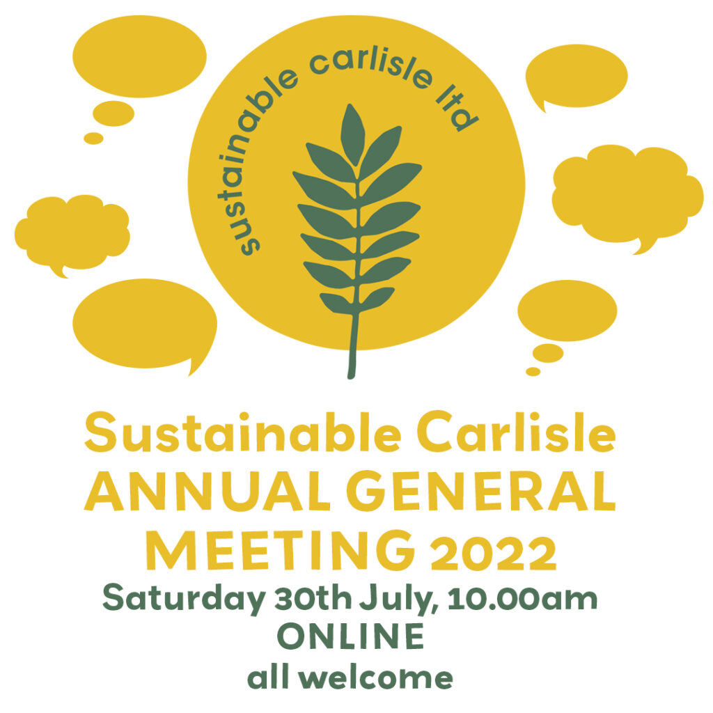 Everyone is invited to join Sustainable Carlisle’s annual general meeting on Saturday 30th July, 10 – 11.30am.